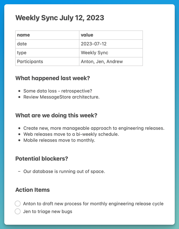 Weekly Sync July 12, 2023